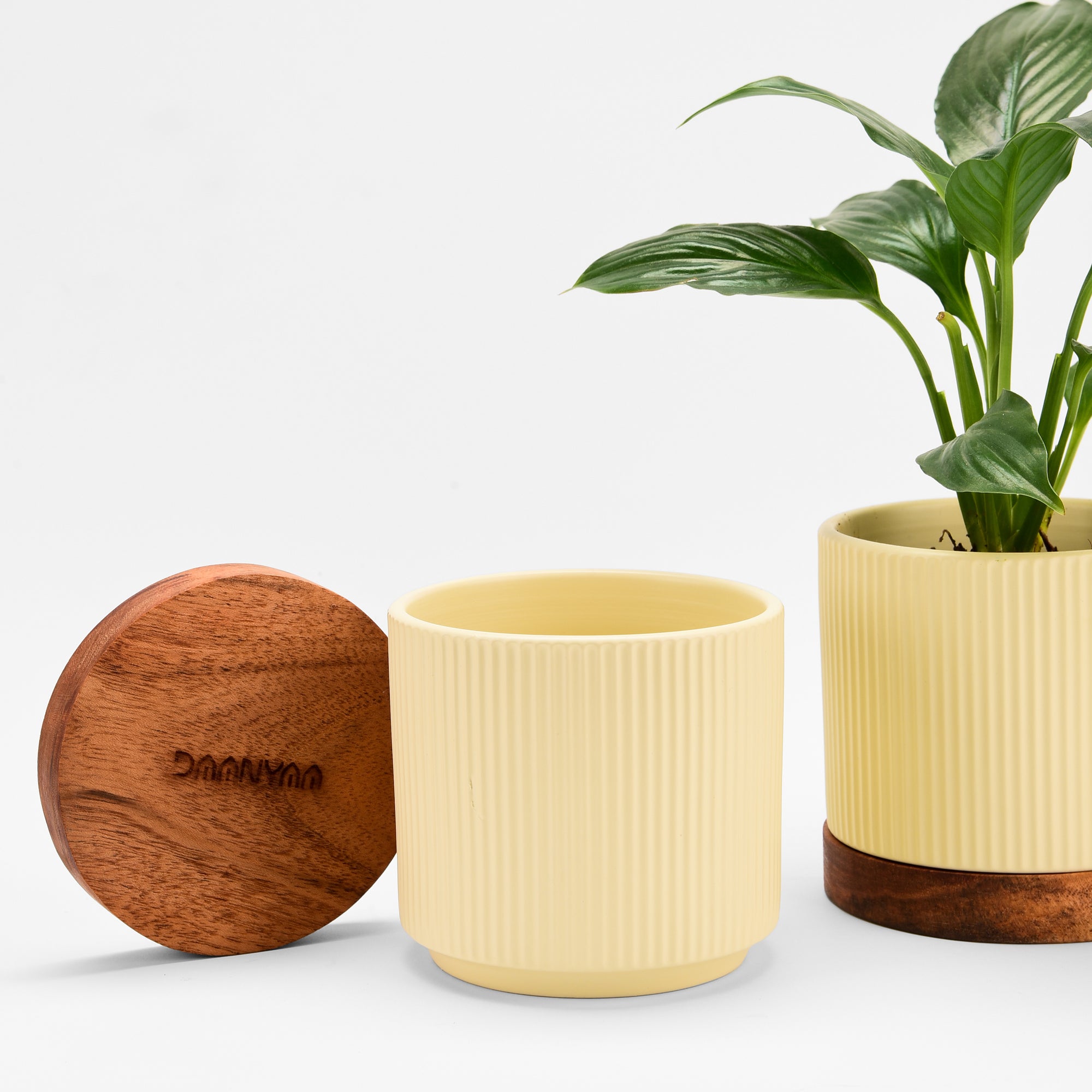 Ceramic Planter with Wooden Base Handmade ceramic on premium acacia wood. Low maintenance (the planter, not the plant—that's on you).