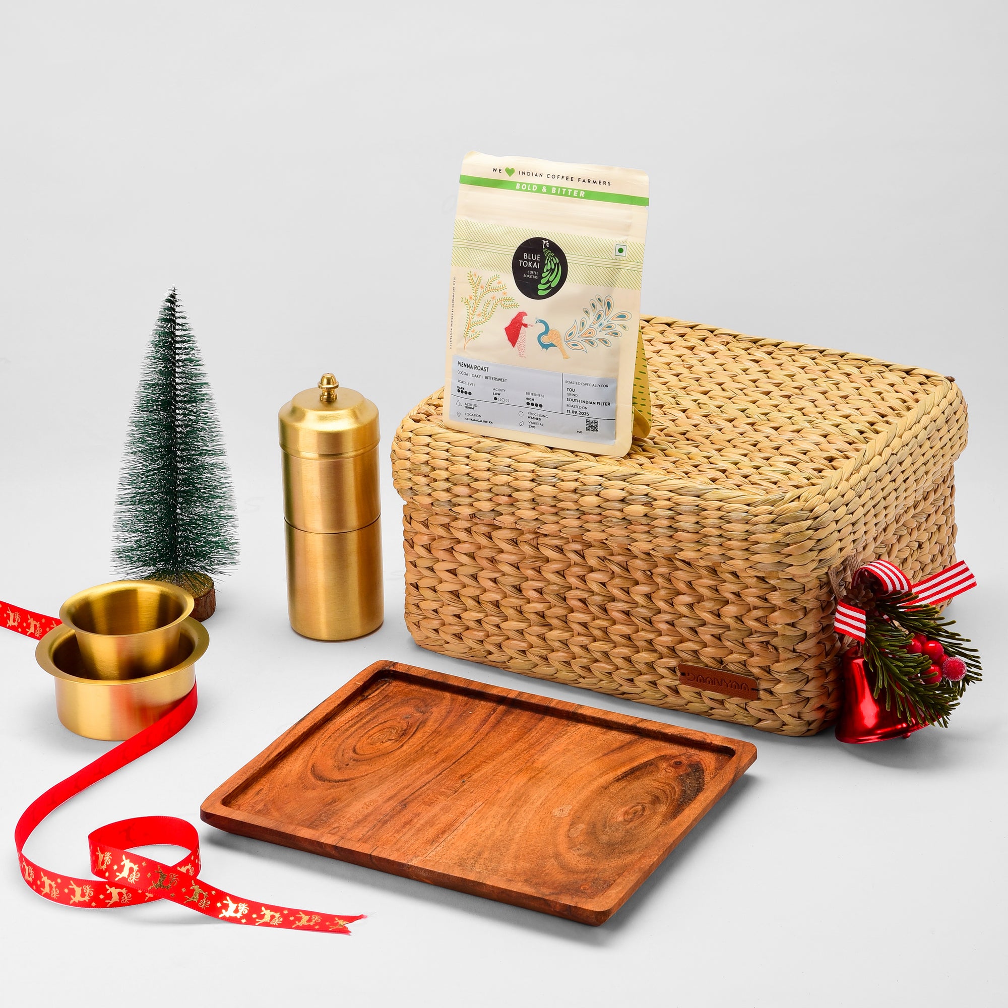 Make mornings feel less rushed - authentic brass, handcrafted wooden tray, premium filter coffee - for an authentic South Indian experience.