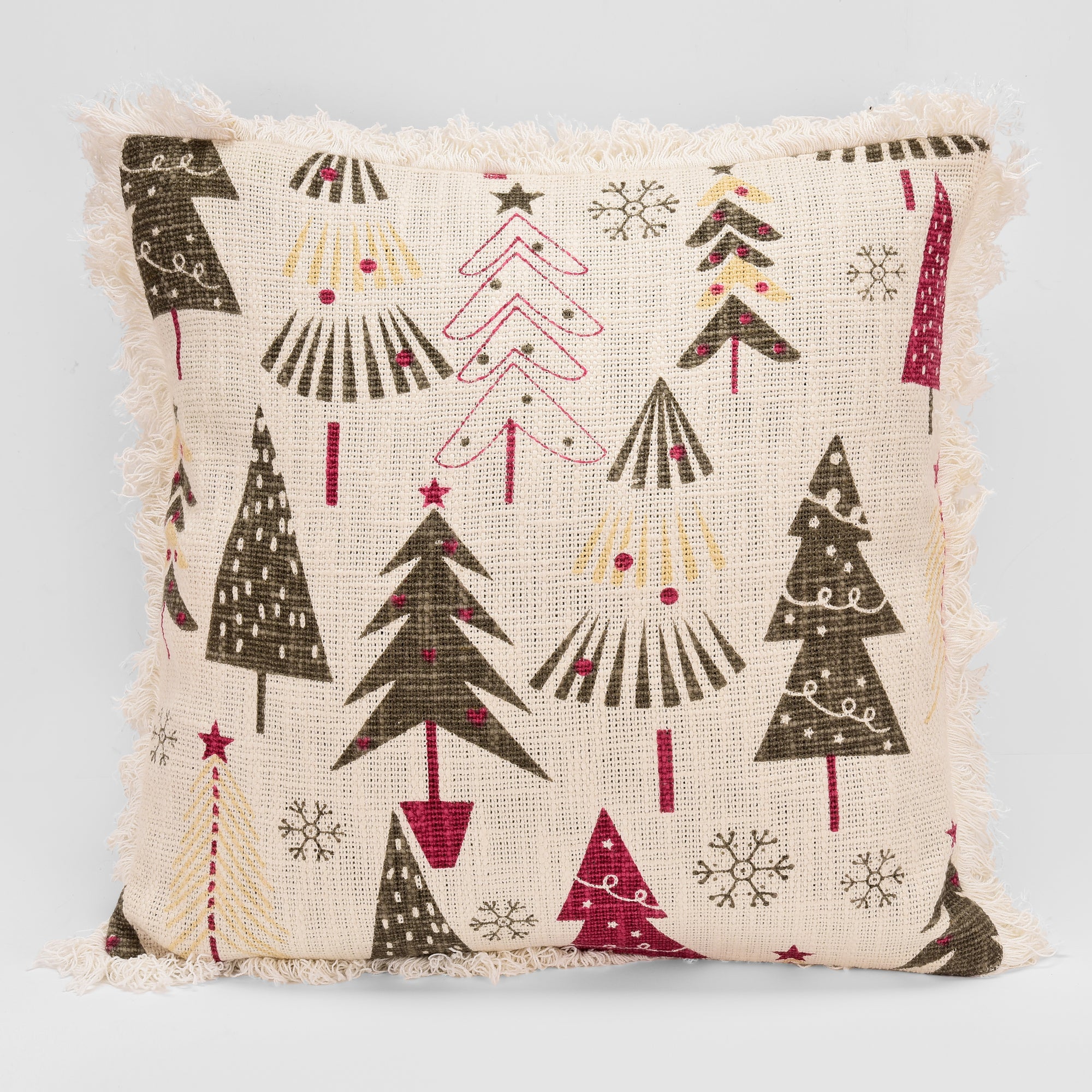 Christmas Themed Cotton Embroidered Cushion Cover: Handcrafted embroidered detailing on soft cotton makes this Christmas-themed cushion cover a perfect holiday décor accent.