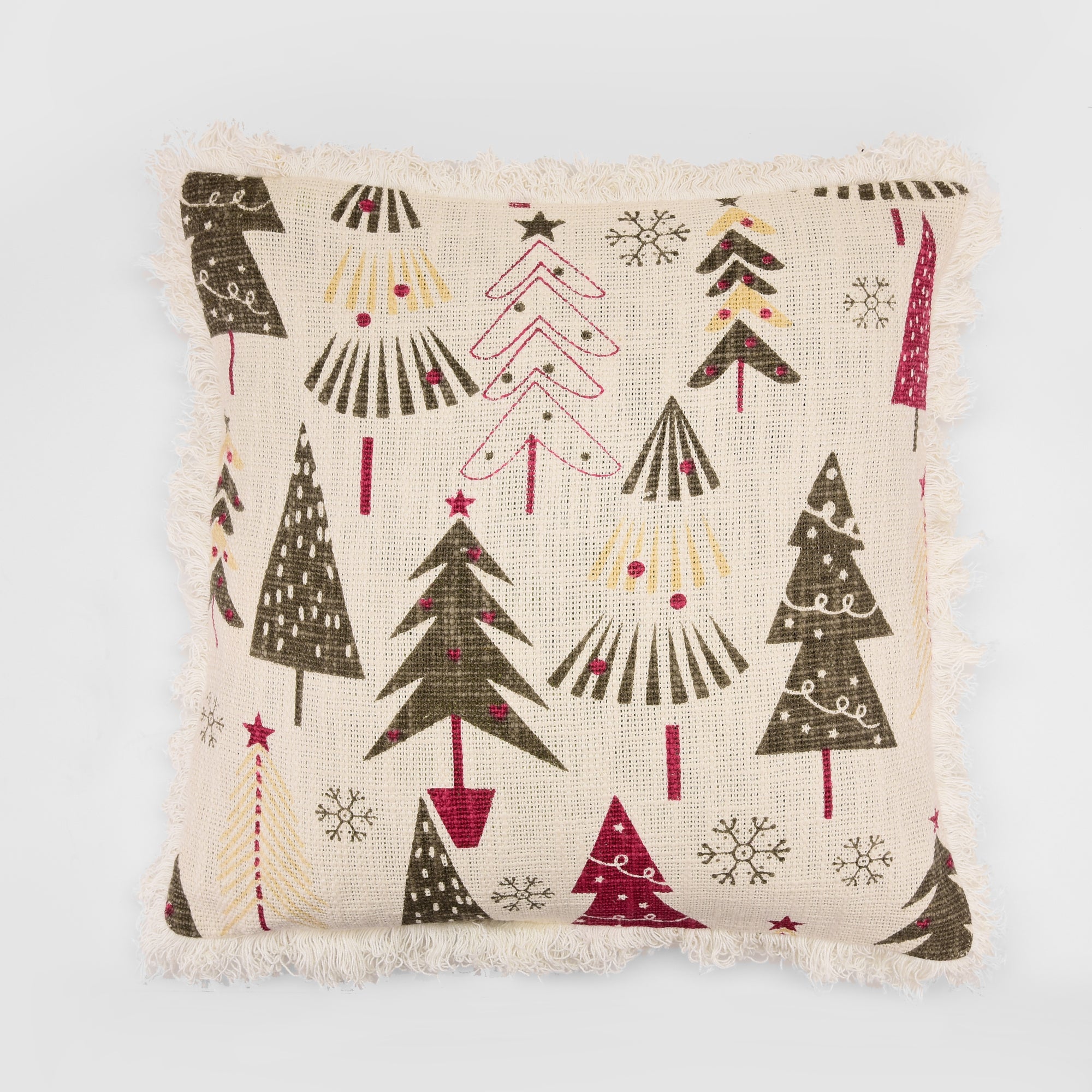 Christmas Themed Cotton Embroidered Cushion Cover: Handcrafted embroidered detailing on soft cotton makes this Christmas-themed cushion cover a perfect holiday décor accent.