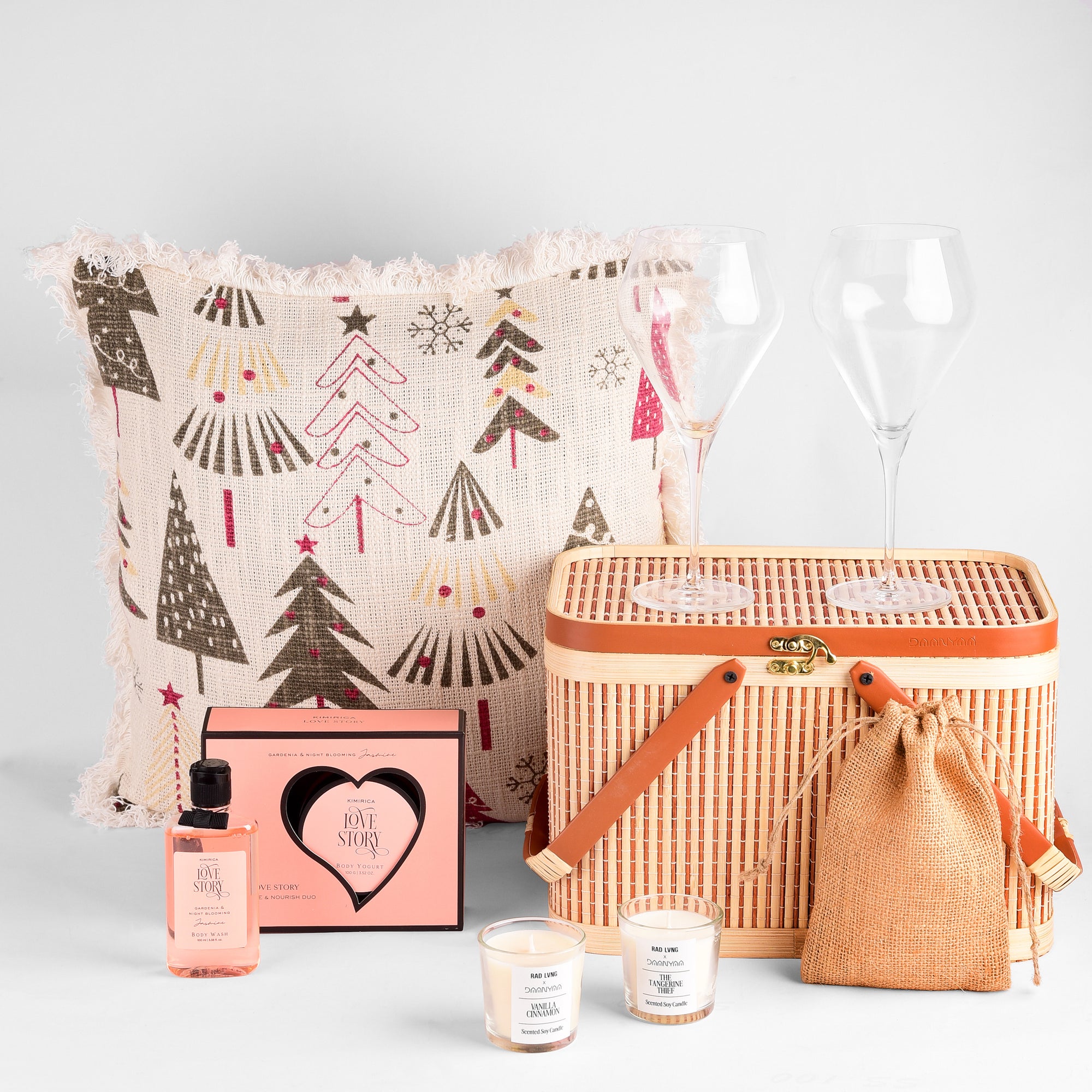 Thoughtfully packed in an eco-friendly wicker basket that doubles as stylish décor, it’s the perfect gift for Christmas, anniversaries, housewarmings, and intimate celebrations—bringing relaxation, festive joy, and timeless home comfort.