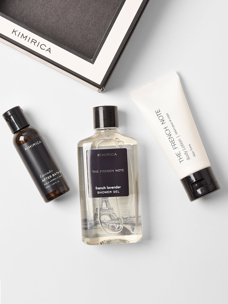 Kimirica French Connection Set French Lavender meets thoughtful skincare. Shower gel, body lotion, after-bath oil—each one working overtime with Aloe Vera, Shea Butter, and Sweet Almond Oil to keep skin feeling good.