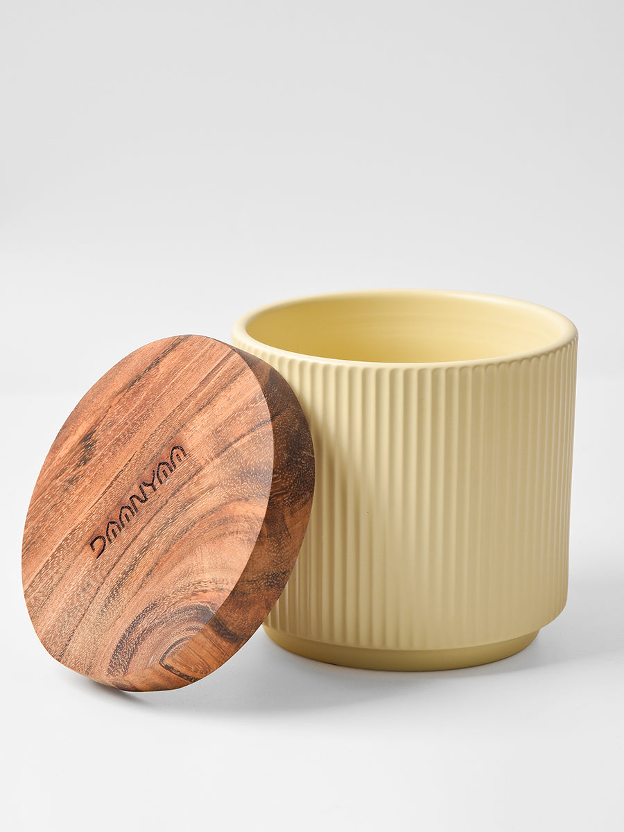 Ceramic Planter with Wooden Base Handmade ceramic on premium acacia wood. Low maintenance (the planter, not the plant—that's on you).