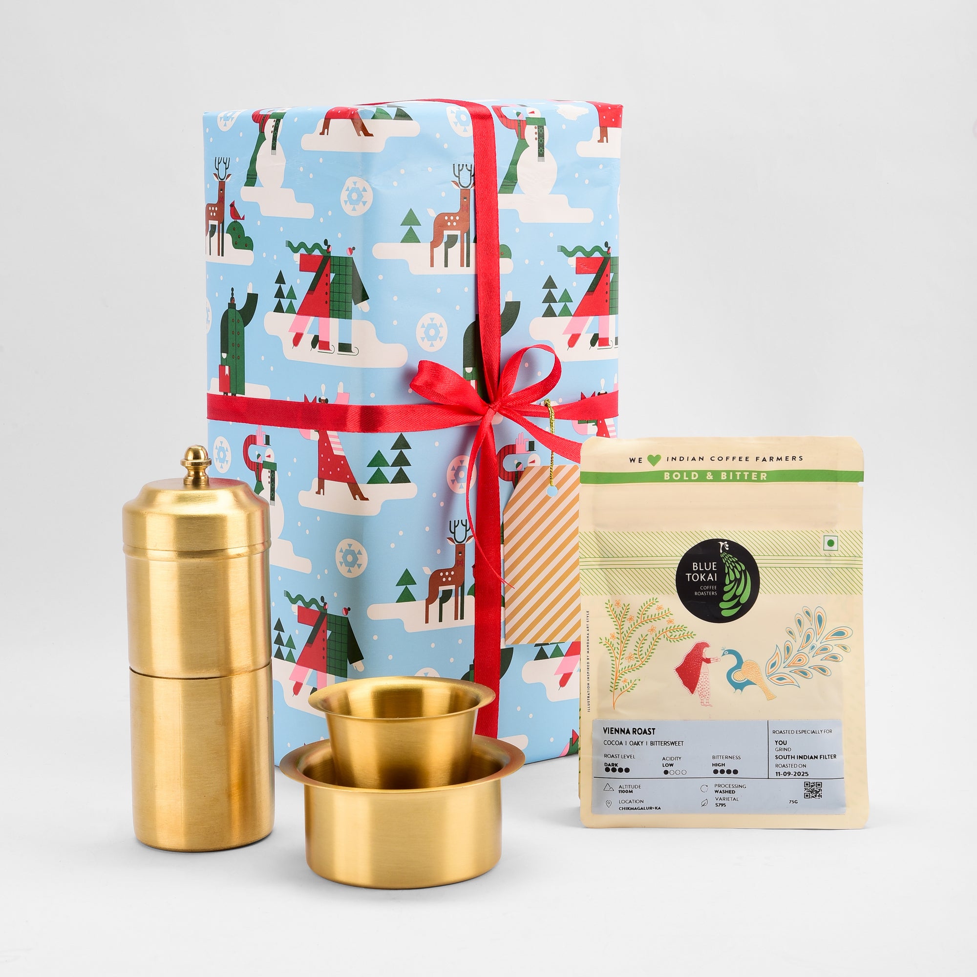 Start and end your day with a ritual that feels grounding yet indulgent. This hamper unites rich, aromatic coffee with timeless brassware to turn every brew into a moment of calm.